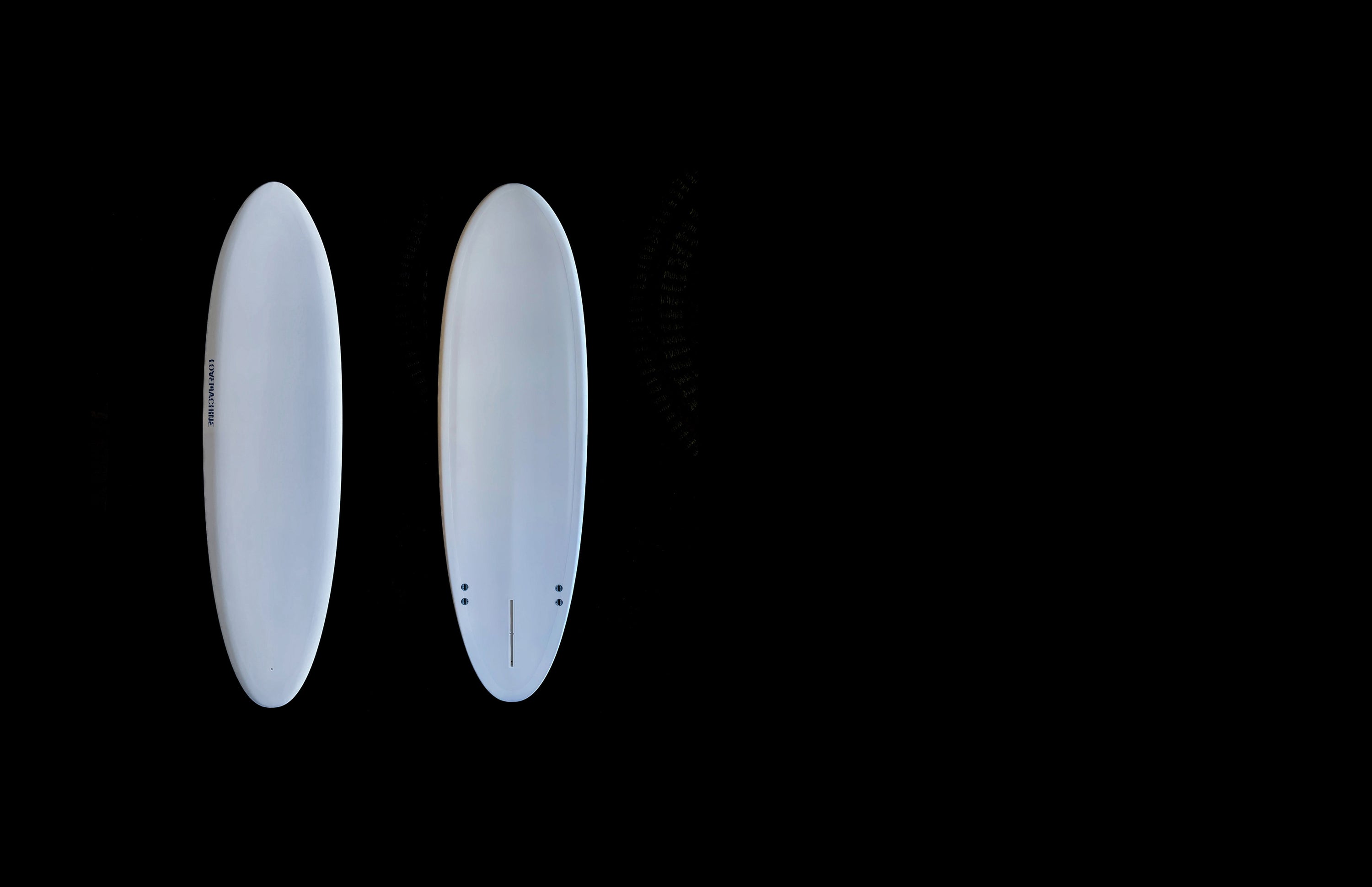 This lift-focused egg came from a request in 2017 for something fun and approachable for the beach breaks of Japan - softer faces with playful sections and average size in general, something compact that scoots with minimal input from the rider. The Cheet has a really sweet and subtle outline with its widepoint slightly ahead of center. The bottom is focused on maximizing lift with no neutral or unused space; These stay on top of the water with little pumping and draw out really smooth round lines in a variety of waves. Being a more compact egg, the goal was to pack a punch in every square inch of the bottom and match that with a broad flat deck that makes a really stable and predictable platform. The rails are low and with a slight egginess to them, not too sharp or penetrating. The bottom shape is a single entry which transitions into a triple then quadruple concave - the outermost ‘rail’ concaves taper off just ahead of the side fins with little lump of spiral vee under your back foot for roll.